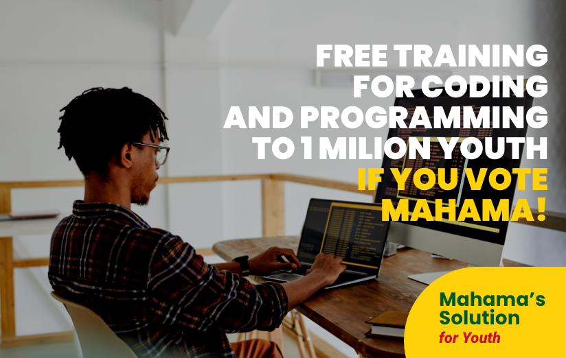 The new NDC government will establish the One Million Coders Programme (OMCP) which will adopt public-private partnerships in the critical sectors such as security, education, and health in order to absorb trained beneficiaries of the OMCP Programme. Mahama will also provide free training to one million youth (1.000.000) with knowledge and skills for coding and programming, web developing and app development!