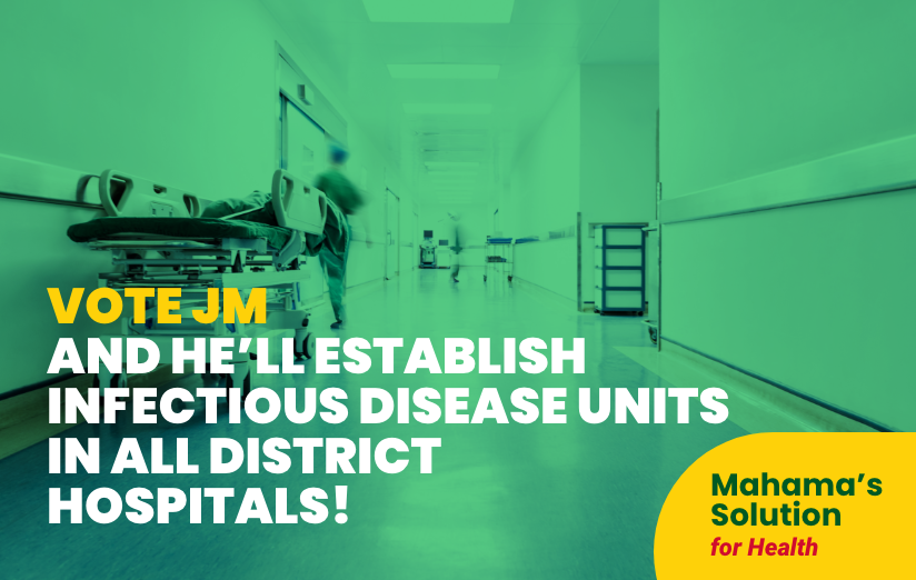 The coronavirus pandemic has shown us how important it is to have a healthcare system that can look after our citizens! The new NDC government will establish infectious disease units in all district hospitals and it will also construct two Police hospitals in the middle and northern zones, so that we can be ready for what may come next! The future belongs to those who prepare for it today!