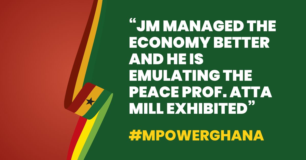 "JM managed the economy better and more importantly he is emulating the peace Prof. Atta Mill exhibited when he was president am with you JM all the time. Thanks."
